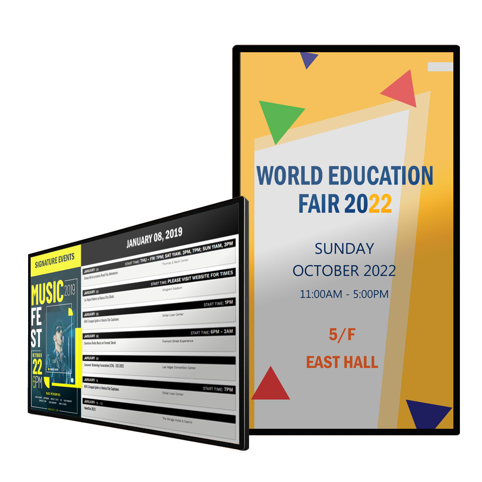 Our cutting-edge technology enables you to display real-time information such as schedules, announcements, and updates in a large and easily visible format, making it easier for visitors to navigate the halls and maximize their time. With the ability to offer digital advertising opportunities and help save on printing and maintenance costs, EYECON digital signage is a valuable tool for convention centers looking to streamline their operations and drive revenue.